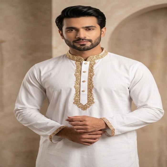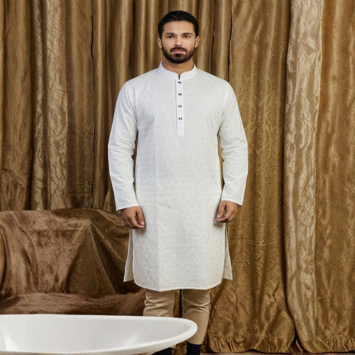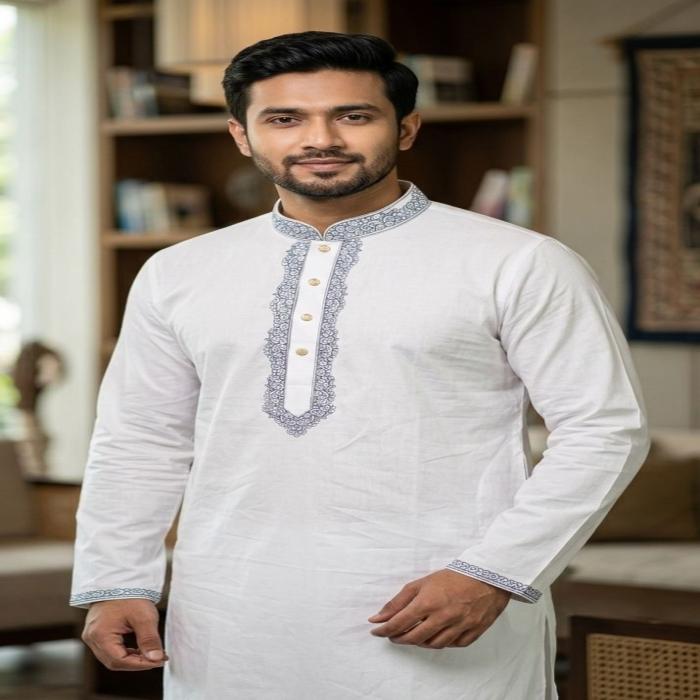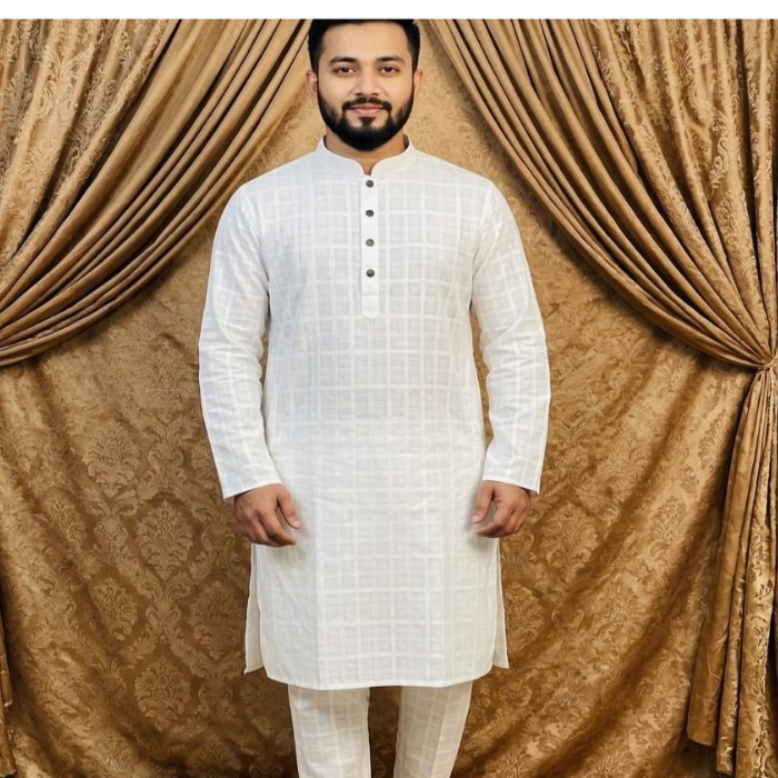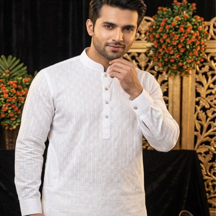 স্টাইলিশ সাদা পাঞ্জাবিগুলো তৈরি করা হয়েছে ১০০% খাঁটি কটন ফেব্রিক দিয়ে, যা গরমে আরামদায়ক ও সারাদিন পরার জন্য একদম পারফেক্ট। সফট ও ব্রেথেবল কাপড় আপনার কমফোর্ট নিশ্চিত করবে। 👑